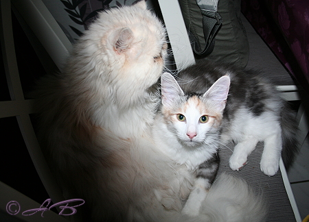 Zu seiner Zeit - dass heisst in den Jahren 2003/2004 war er auch auf Ausstellungen recht erfolgreich. Rassesiege und Best in Show Erfolge konnte er für sich entscheiden. Allerdings fühlte er sich auf Ausstellungen später nicht mehr wohl und wir haben ihn um seiner selbst Willen zu Hause behalten. Er war immer ein sehr sozialer Zuchtkater und hat die Babies stets mit umsorgt.